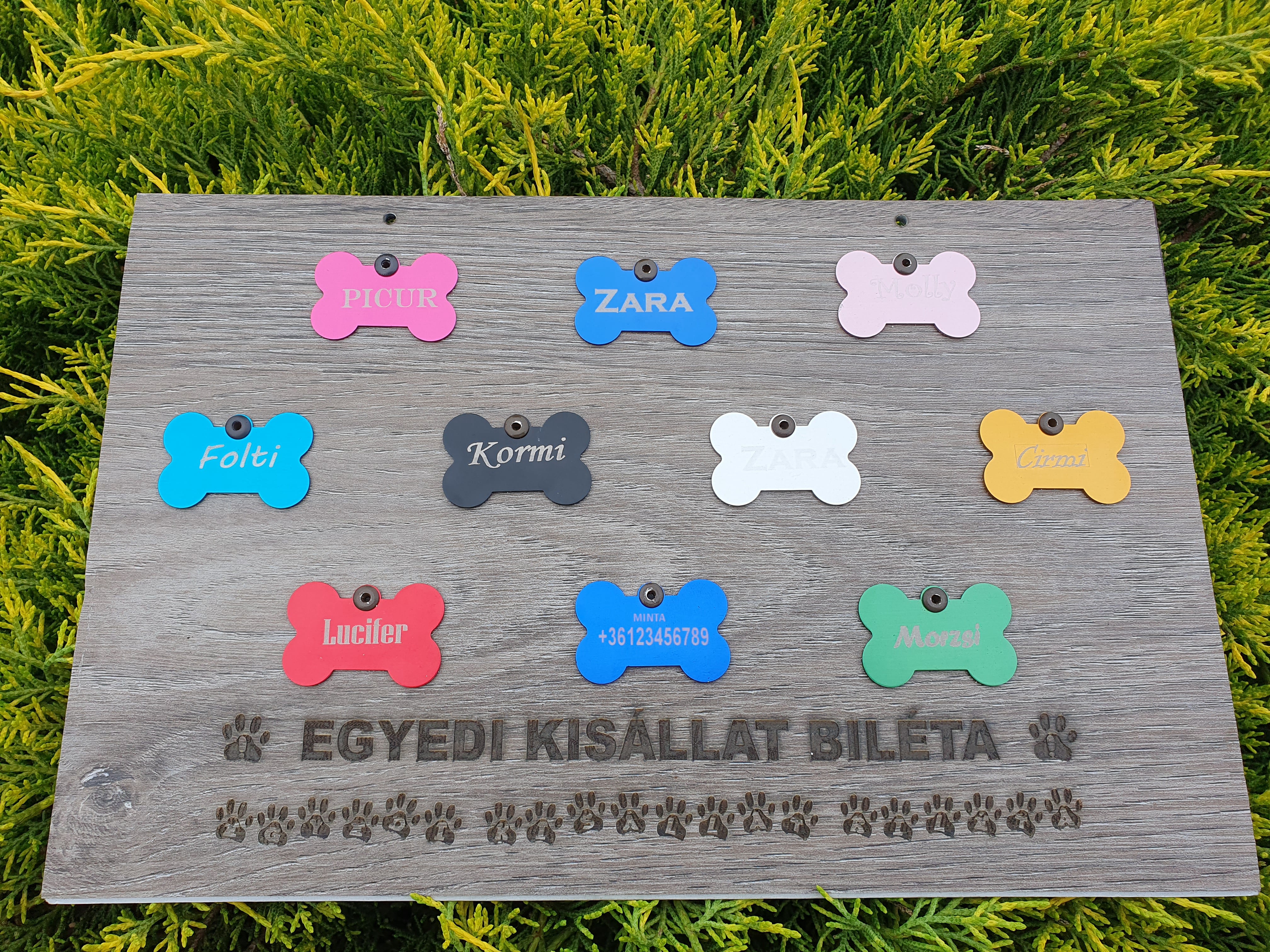 - Egyedi szöveggel, névvel ellátott kisállat biléták